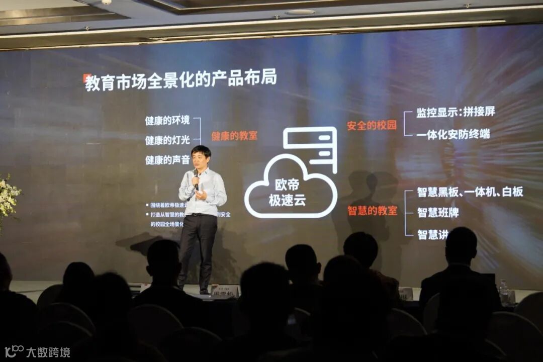 在热烈的分享氛围中,本次峰会迎来了重头戏——欧帝智慧校园整体解决方案发布。周雪松表示:“欧帝科技将从智慧、安全、健康三方面入手,对教育市场做全景化布局,通过’一张网,一朵云,一个中心’的研发思路,打造人民教育所需要的智慧校园整体解决方案”。