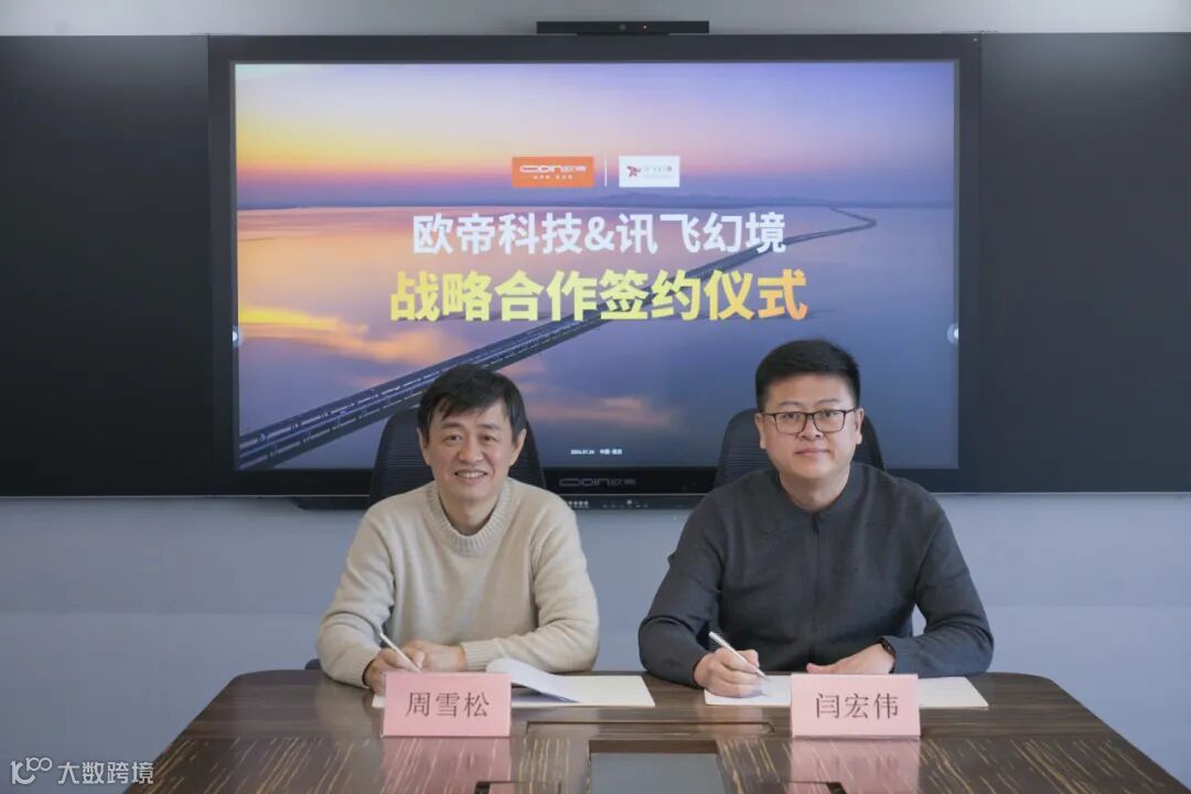 1月24日,欧帝科技董事长周雪松与讯飞幻境董事长闫宏伟、执行总裁高翔签署了战略合作框架协议,双方将建立深度合作,共同推动教育数字化场景的创新与发展。
