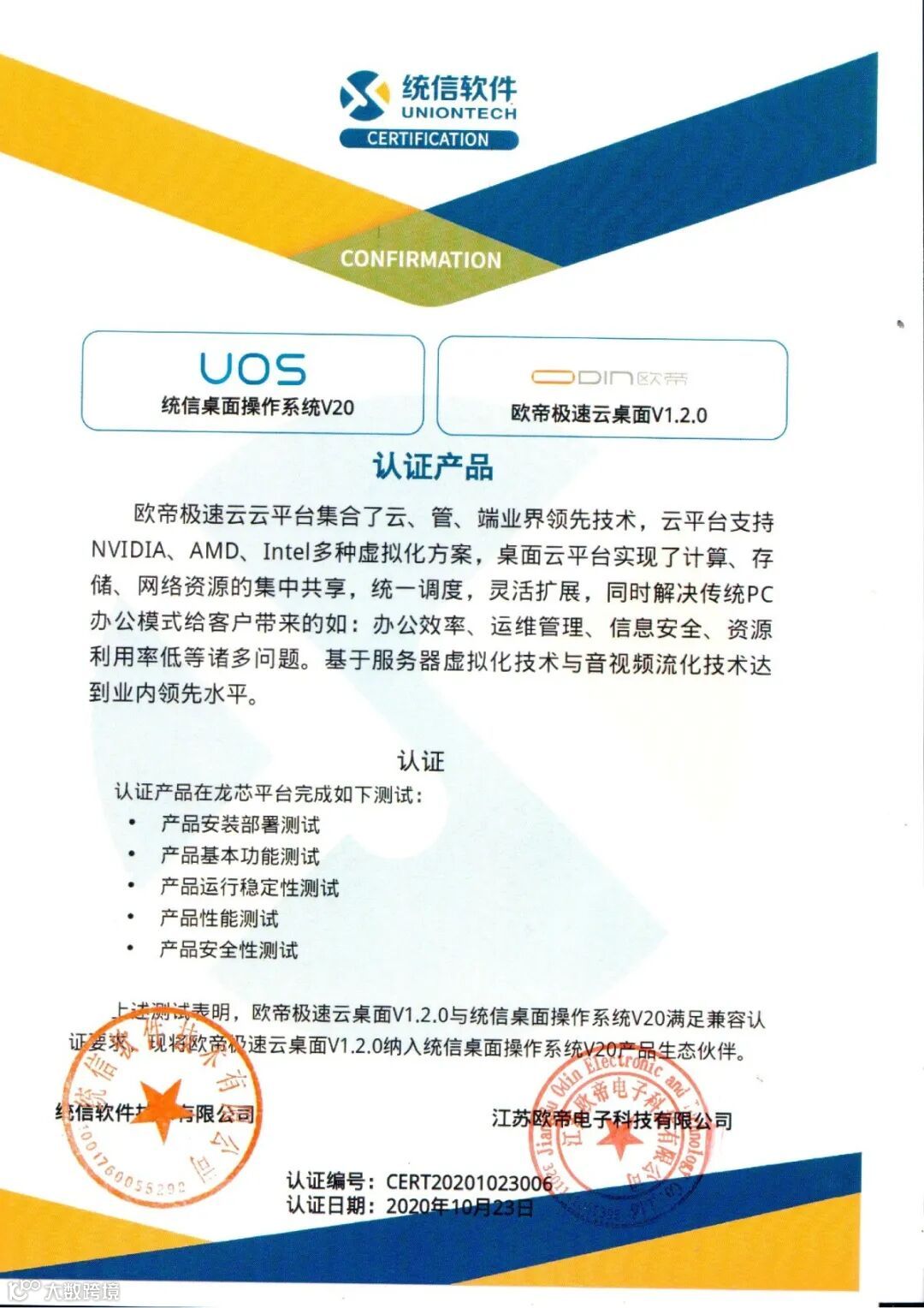 近日,欧帝极速云桌面V1.2.0与龙芯3B4000平台、统信桌面操作系统V20完成互认证。基于服务器虚拟化技术与音视频流化技术的极速云在推动教育信息化国产化上又迈进一步。