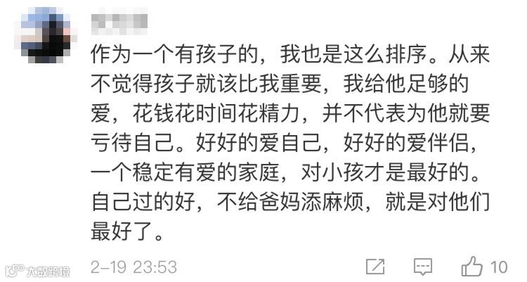 伴侣是陪伴我们接下来人生的人,因此有网友把伴侣放在第一位~(空气中有甜甜的味道耶~)
