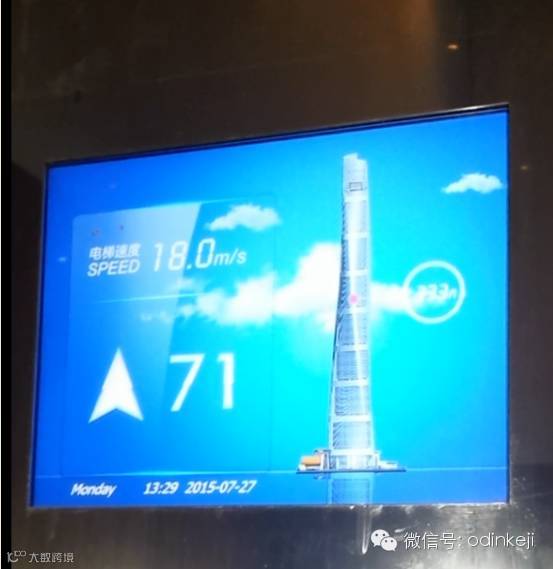 欧帝科技为上海中心提供从B2到118层直达的三部观光电梯顶部拼接屏幕的设计安装。