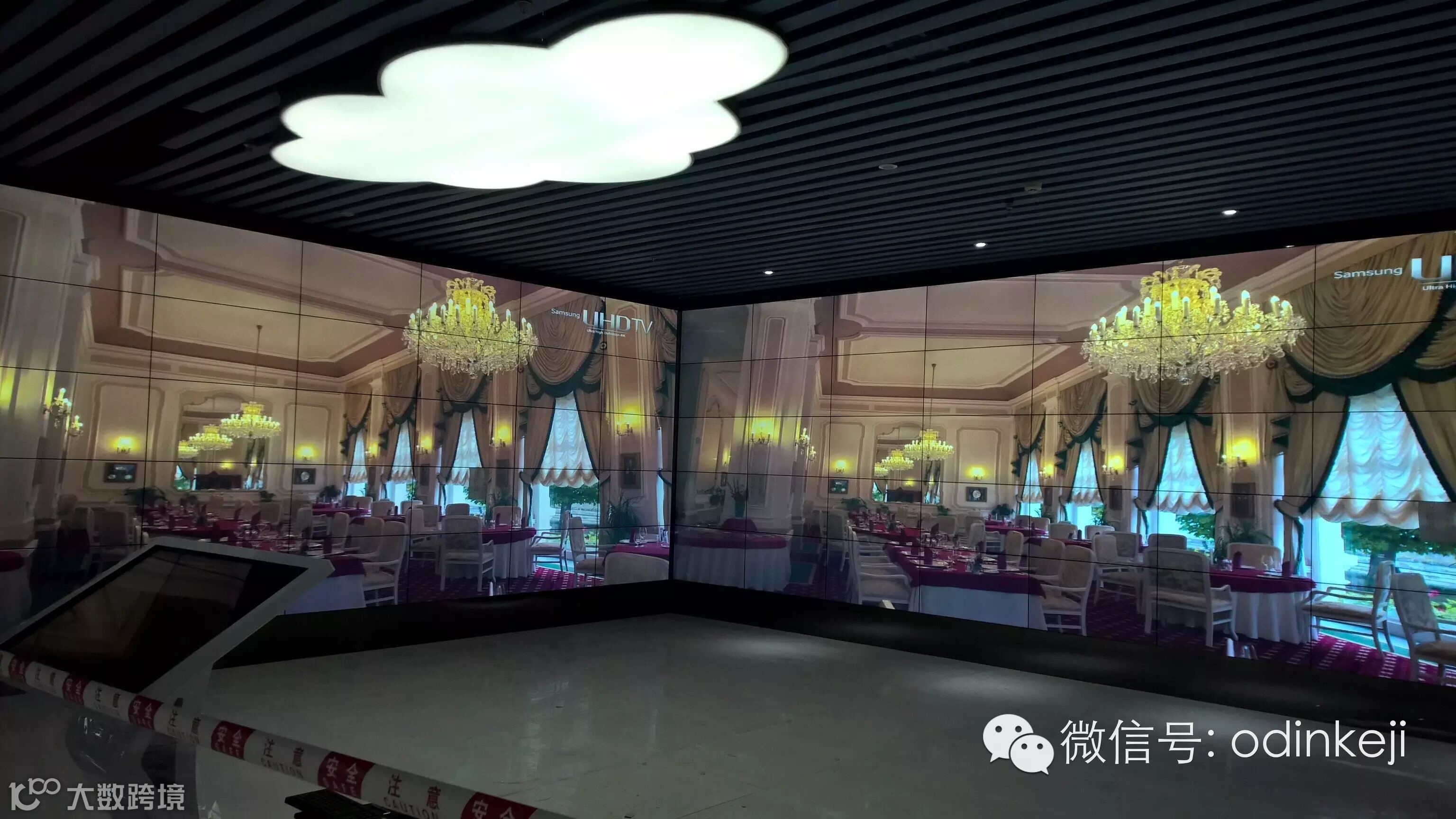 为提升高科技企业的核心竞争力,吸引高科技人才提升企业综合实力,该中心展厅采用了110台业界最窄双边拼缝仅为3.5mm的46英寸超窄边液晶拼接单元及欧帝第三代云图图像处理系统组成的超大规模的U型拼接显示墙,通过无线智能平板系统:实时展示企业(淘宝网,京东,聚美等大型的电商)发展成果,发布远程数据信息,统一调度节点动态。