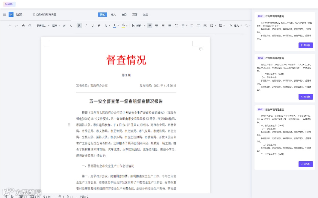 系统根据任务标题、主要内容及预设模板,快速生成结构清晰、内容完整的报告,确保报告格式统一、重点突出,提升报告撰写效率与质量。