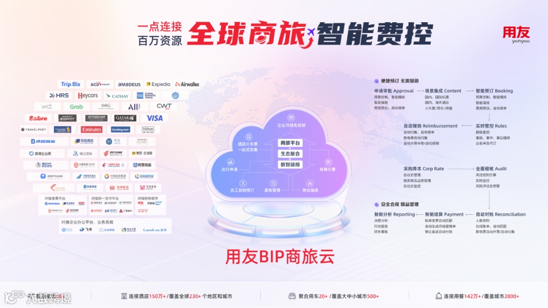 在数字化浪潮席卷全球的今天,企业消费管理正面临着前所未有的挑战与机遇。如何高效、合规地管理企业消费,降低运营成本,提升运营效率,已成为众多企业关注的焦点。用友作为企业管理软件与服务领域的领航者,始终致力于为企业提供全面、智能的管理解决方案。用友商旅云,作为用友产品体系的重要组成部分,以商旅管理为核心,提供一站式企业消费管理技术解决方案。其整合超过150家服务商的资源,并与企业的费控、OA和ERP系统实现无缝对接,构建了一个从申请到预订、报销、结算、凭证的全流程一体化管理体系。