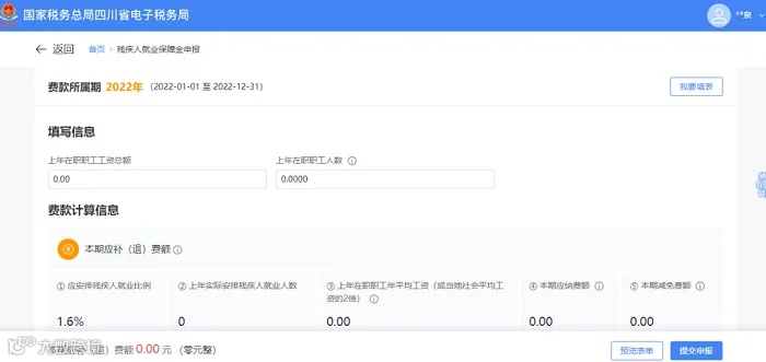 (2)确认数据预填是否正确,如上年实际安排残疾人就业人数,并补充上年在职职工工资总额、上年在职职工人数。
