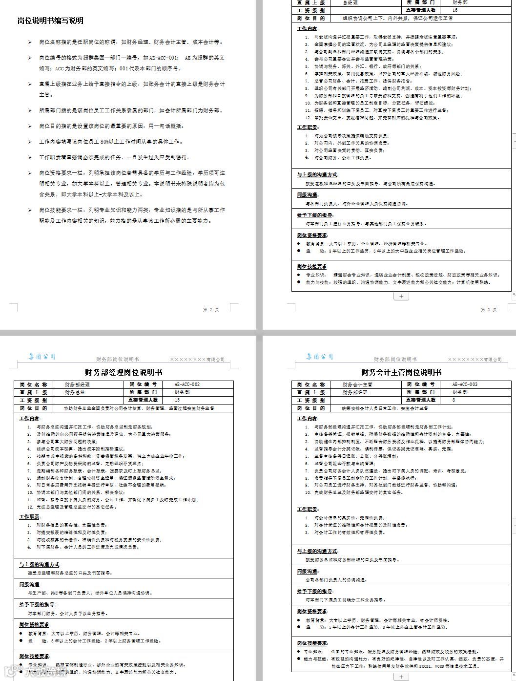 财务部岗位说明书