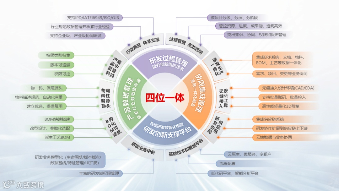 面向协同集成管理,智石开通过研发生产一体化,集成ERP系统,实现文档、物料、BOM、工艺等数据一体化,以及需求、项目、变更等业务协同;通过设计工具的无缝接入,实现无缝接入设计环境(CAD/EDA),并支持批量赋码、批量检入,高性能轻量化3D引擎;通过供应链研发协同,集成供应链系统,将研发协作扩展到供应链上下游,实现云端数据与业务协同。由此全面完成研发生产的高效一体化融合。