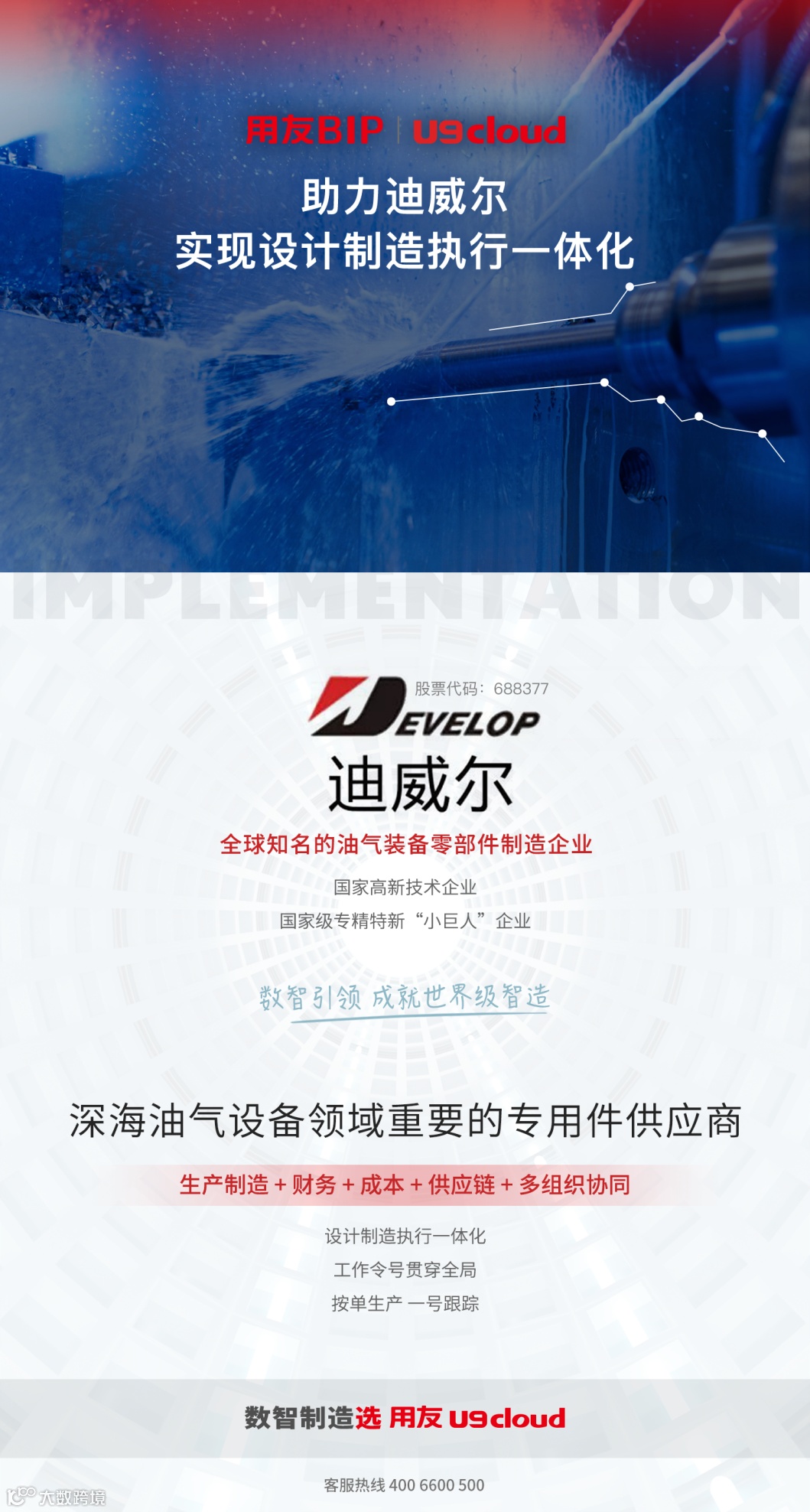 同为用友U9 cloud客户的另一家“小巨人”南京迪威尔高端制造股份有限公司,是全球知名的油气装备零部件制造企业,其产品已广泛应用于全球各大主要油气开采区的深海钻采、页岩气压裂、陆上井口、高压流体输送等油气设备领域。