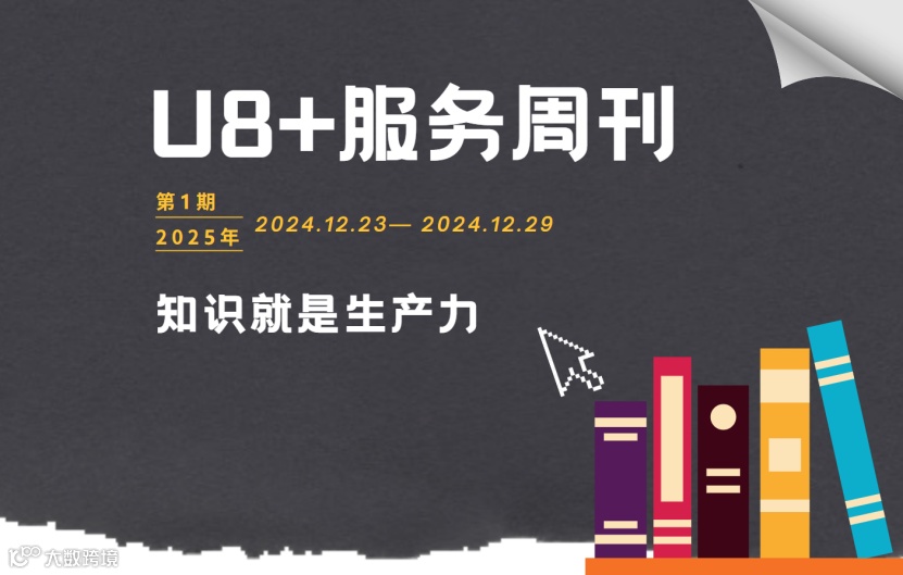 《U8+服务周刊》每期回顾上周的新增补丁、高频问题并进行详细讲解;《U8+服务周刊》致力于让大家及时地了解U8软件的最新动态以及最新的知识。新增补丁中会详细介绍补丁解决的问题以及新增功能等;高频问题会将上周出现频次较高、关注度较高的问题进行汇总解析;《U8+服务周刊》每周推出一期,欢迎大家关注!