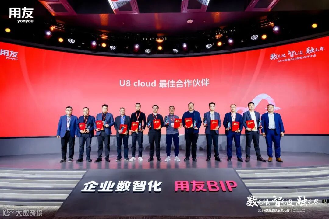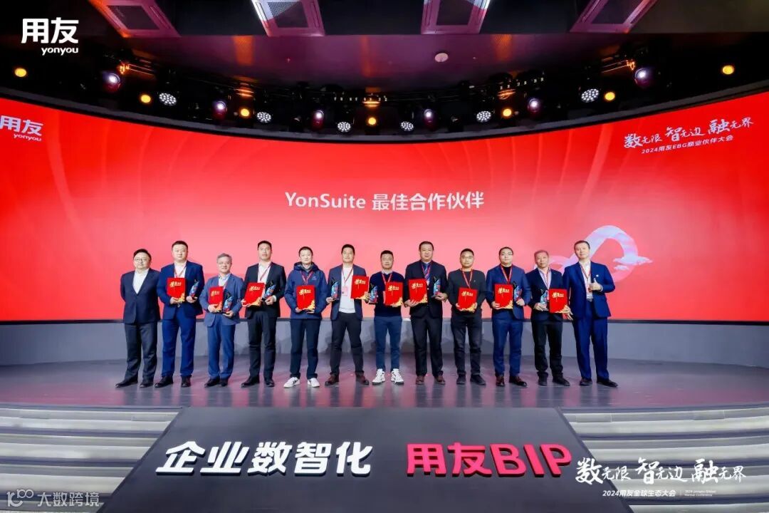 大会最后,用友EBG商业伙伴部现场为2023年度四大产品杰出合作伙伴颁发了荣誉奖项,以赞誉他们在YonSuite、U9 cloud、U8 cloud以及U8+项目中展现出的卓越成绩和重大突破,另外还有102个优秀合作伙伴奖项通过线上方式进行颁发,期待2024更多伙伴进入优秀伙伴行列。