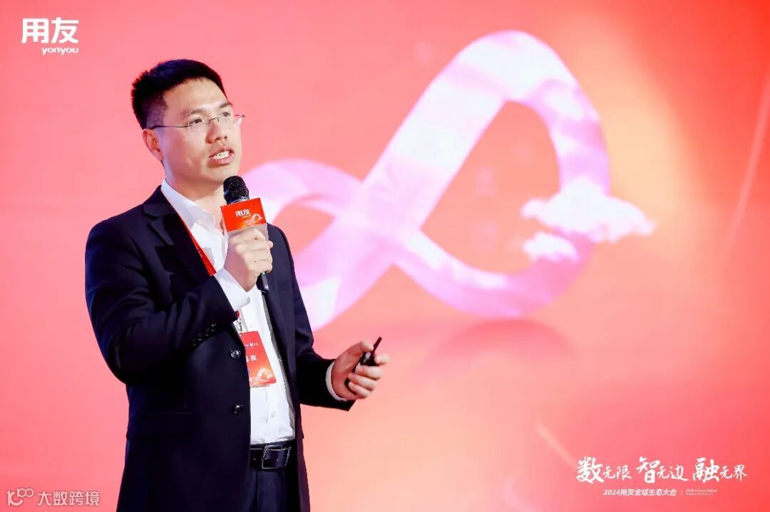本次大会,用友网络高级副总裁兼企业BG总裁徐洋先生发表《数智云领 融合共赢》主题演讲。他首先代表公司诚挚感谢全体商业伙伴2023年同心协力,对用友的鼎力支持与卓越贡献。