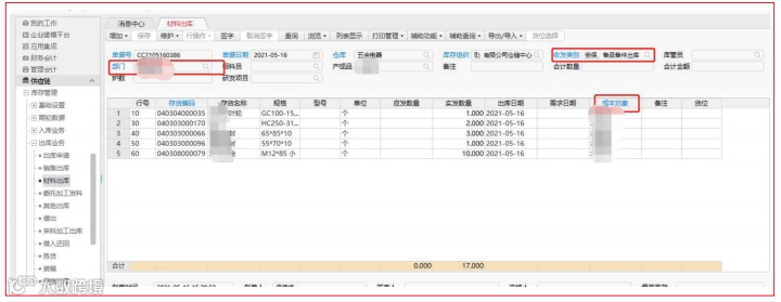 • 生产过程的领料,按照用途划分清晰,为财务生产成本核算提供准确数据来源。
