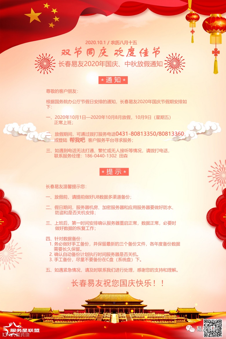 导读:长春易友2020年国庆节、中秋节放假通知及值班安排