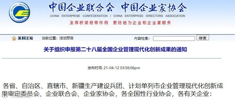 中国企联:通过两化融合管理体系评定企业可直接申报第二十八届全国企业管理现代化创新成果