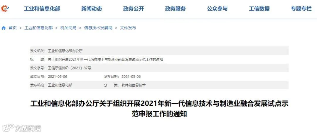 工信部:2021年两化融合管理体系贯标示范企业申报工作启动