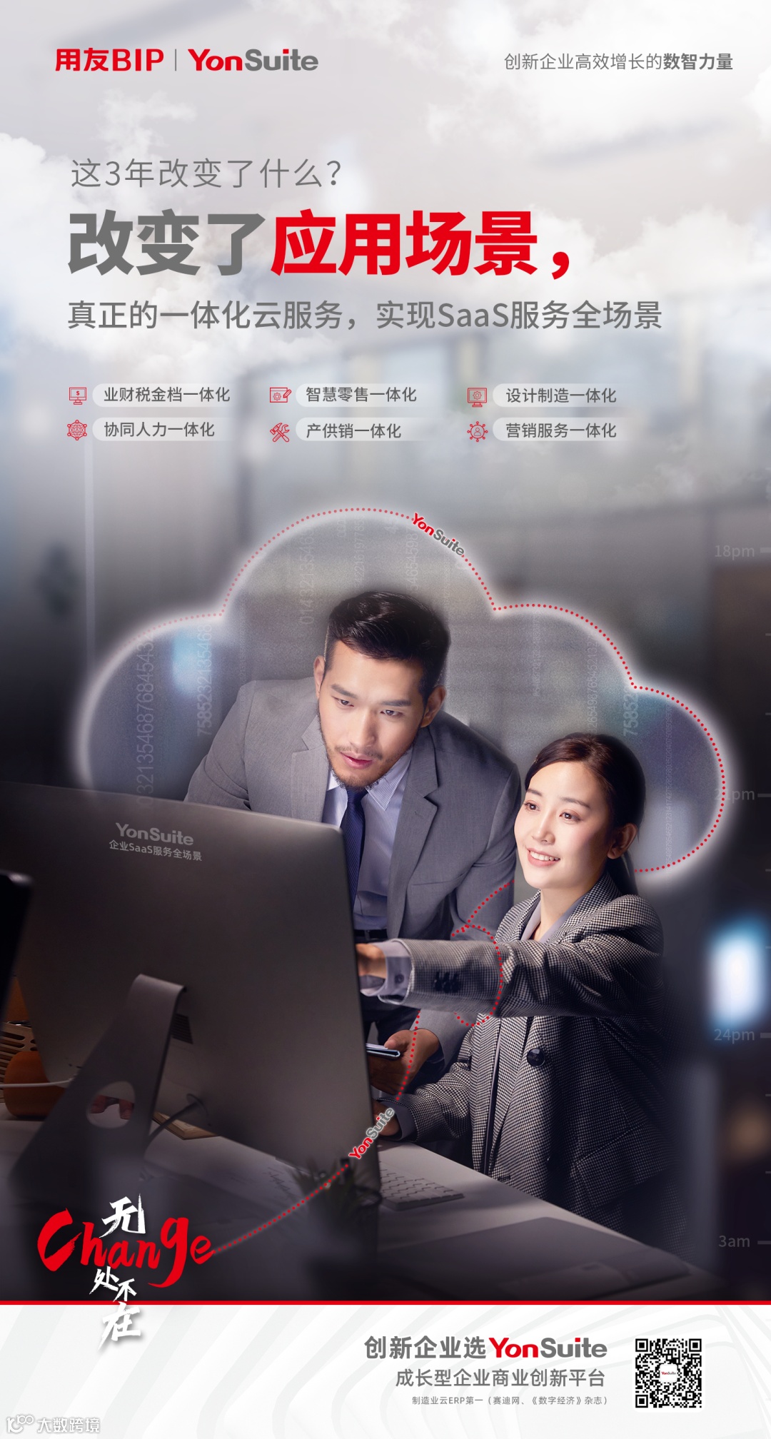 易友时代疫情与国际形势叠加,令中小企业经营异常困难,客户流失、资金断裂、亏损严重。用友构建出全球领先的纯公有云一体化云服务平台YonSuite,提供了企业经营管理与商业创新的全场景SaaS服务,让企业开通即用、随需扩展,低成本获得应对危机的IT力量。
