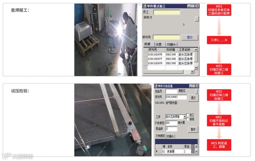 • 试压设备对接:实时获知每台换热器的气密性检测情况,更可进一步采集当前报警或异常信息、测试时间、压力值、标准值等信息。