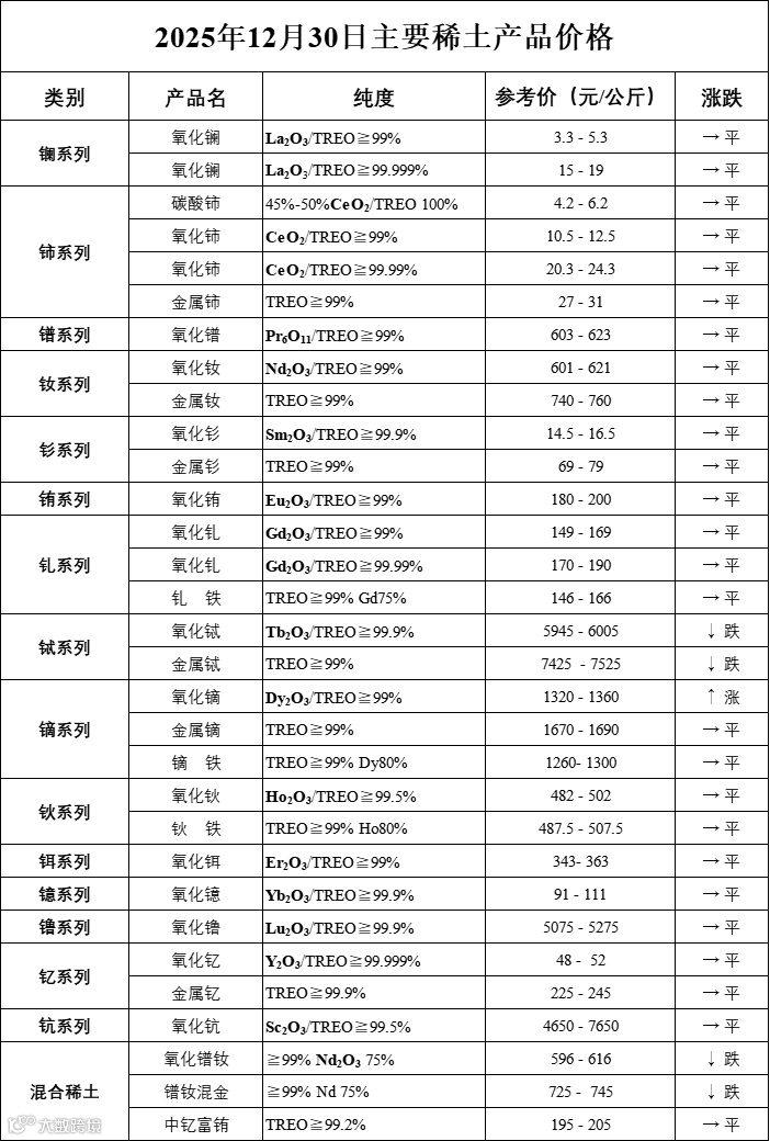 主要稀土价格