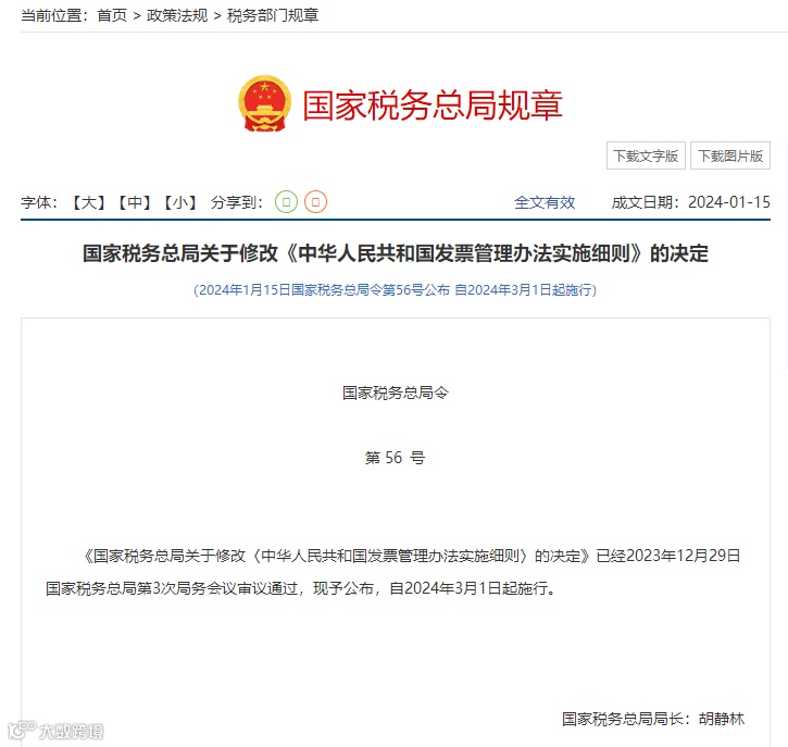 (2024年1月15日国家税务总局令第56号公布 自2024年3月1日起施行)