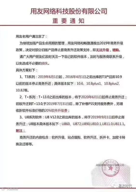 敬爱的客户请注意,畅捷通版本自6月1日起老版本马上要停版了!停版后无法进行升级加购操作!不抵扣任何升级加购费用!相当于只能重新购买!