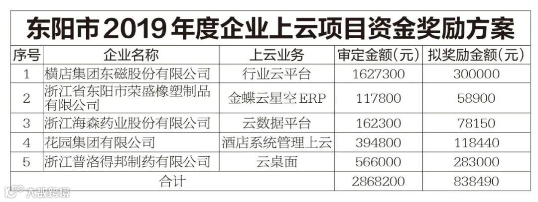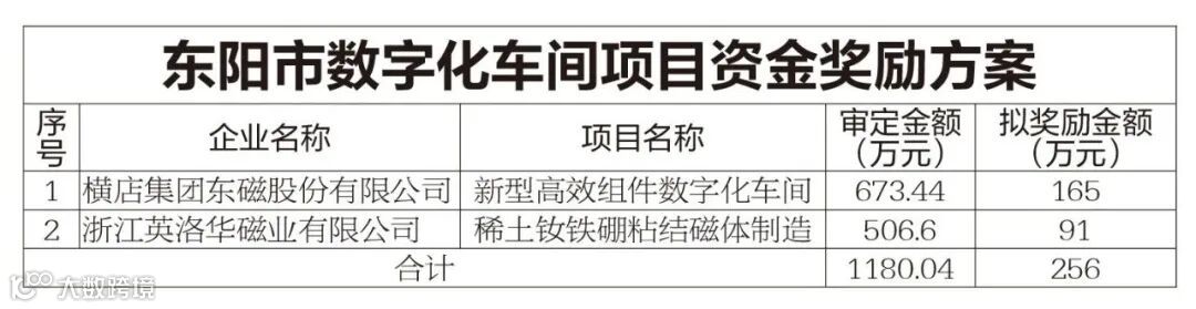 近日,东阳市两化融合领导小组办公室等发布《关于对东阳市2019年度工业投资、两化融合项目实施财政奖励的公示》,拟对2019年度62个两化融合项目实施财政奖励,最高奖励165万元。