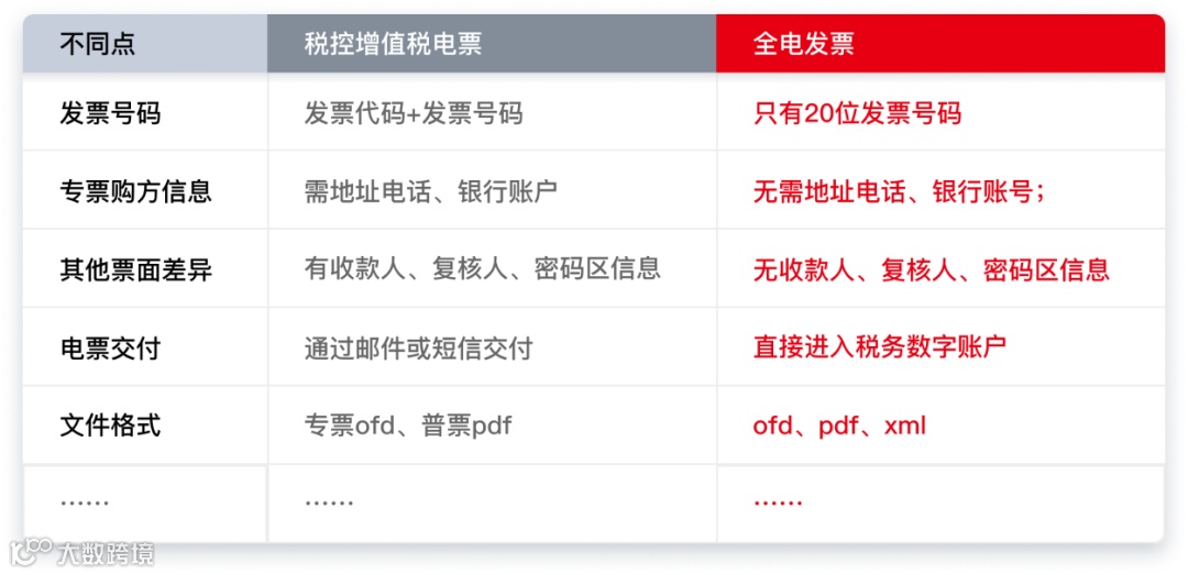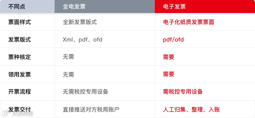 开票流程、板式、文件格式、交付方式等等都有着很多不同。