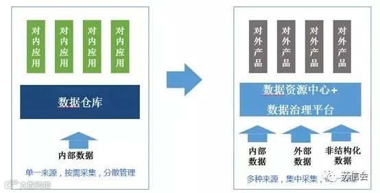 数据管理部门从成本中心转变为利润中心,向业务提供产品服务。数据系统功能由数据应用转变为数据服务,为业务提供数据支撑。