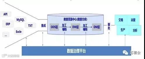 数据资源中心由面向分析业务的功能化平台转变成面向全业务域的服务化平台转型。数据治理平台是数据源、数据仓库、数据集市、服务模块,全过程的主(元)数据管理、各个监控环节,问题处理流程。
