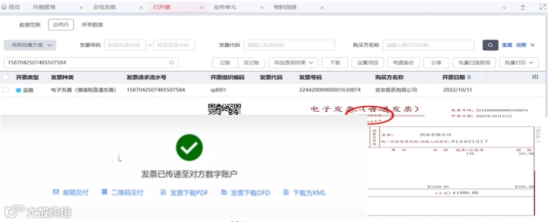 支持开具纸质发票和全电发票、支持接收纸质发票、纸电发票和全电发票。