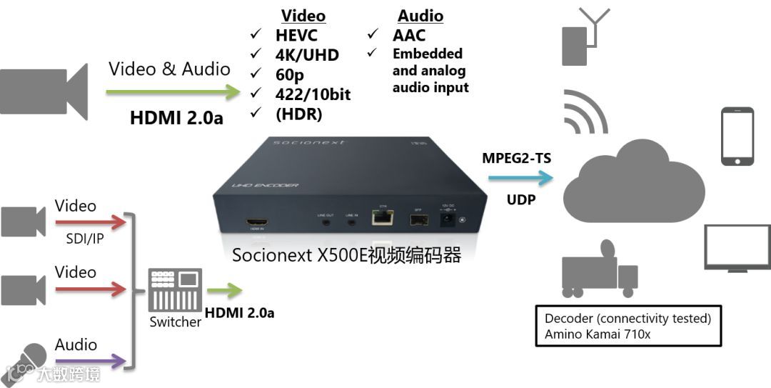 为满足市场需求,Socionext(索喜科技)最新推出HEVC/H.265编码器X500E。X500E搭载了Socionext(索喜科技)开发的高性能编码芯片SC2M50,可实现广播级超高清视频IP直播,该产品将在本月底于全球发售。
