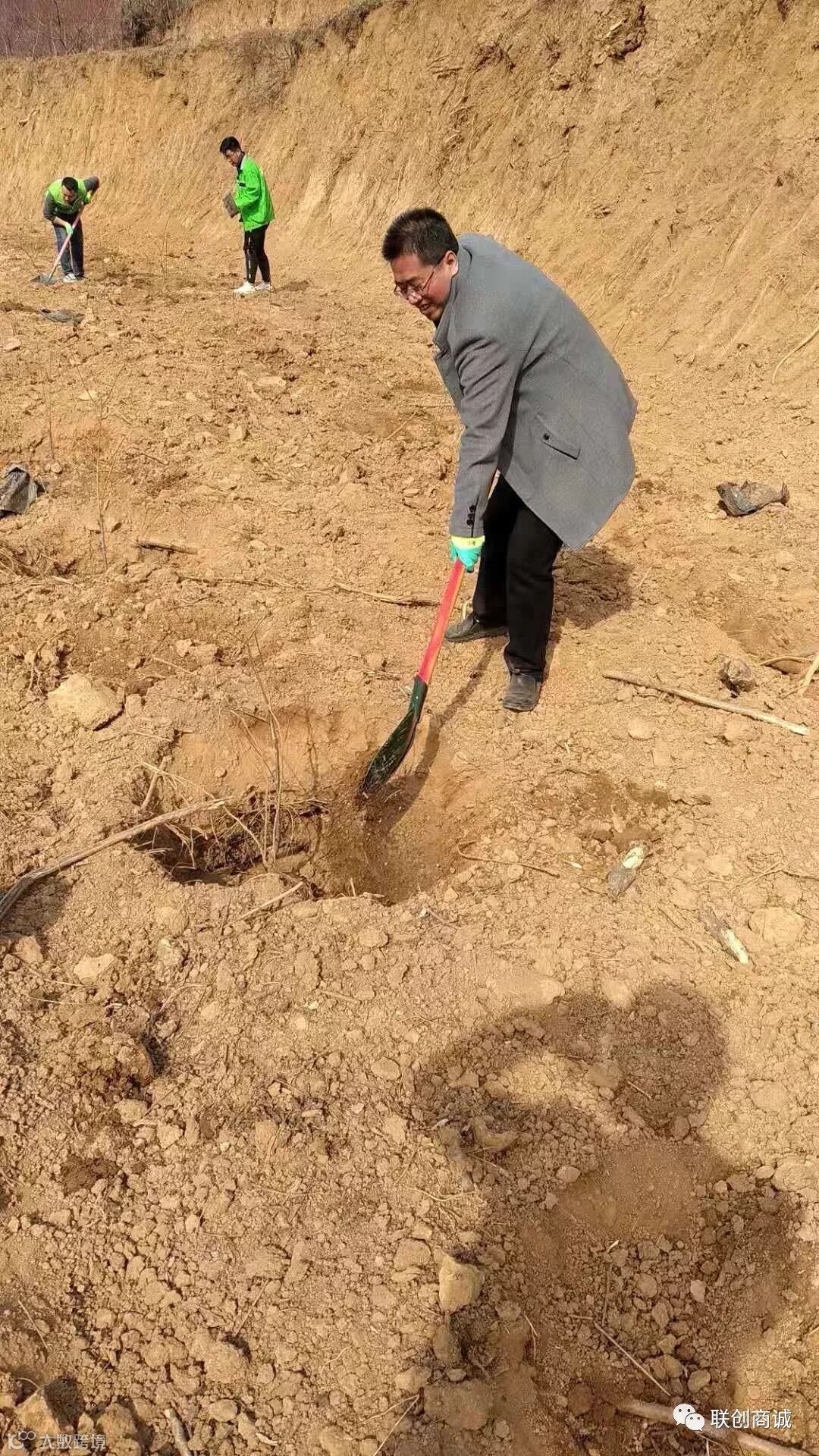3月15日响应渭滨区区政府号召,西部联创后勤部,技术部,等部门派专人奔赴市郊30多公里,在夏砑壑寸东南荒坡参与植树!