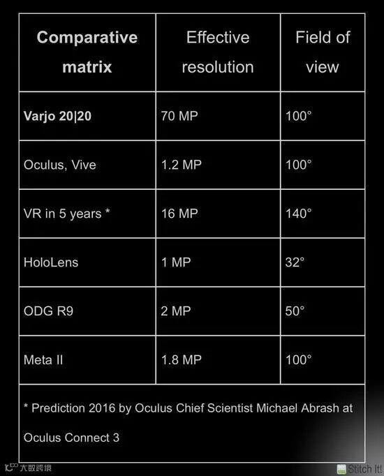 Varjo研发的VR/XR 头显搭载7000万像素的超高分辨率屏幕,视场角可扩展到100度,远超于第一代VR头显产品。Varjo利用自身优势并结合多种技术,形成了一种“仿生学显示屏”,可在限定区域内展现无与伦比的高清晰度图像细节。而事实上,人眼只在中心区域约视场角2度范围内拥有非常高的敏感度,周边视觉则比较差。该款产品模仿人类视觉工作原理并结合混合现实(MR)及视频穿透式显示(VST)技术,使设备拥有人眼级别分辨率,让用户体验更广阔视野的真实世界。