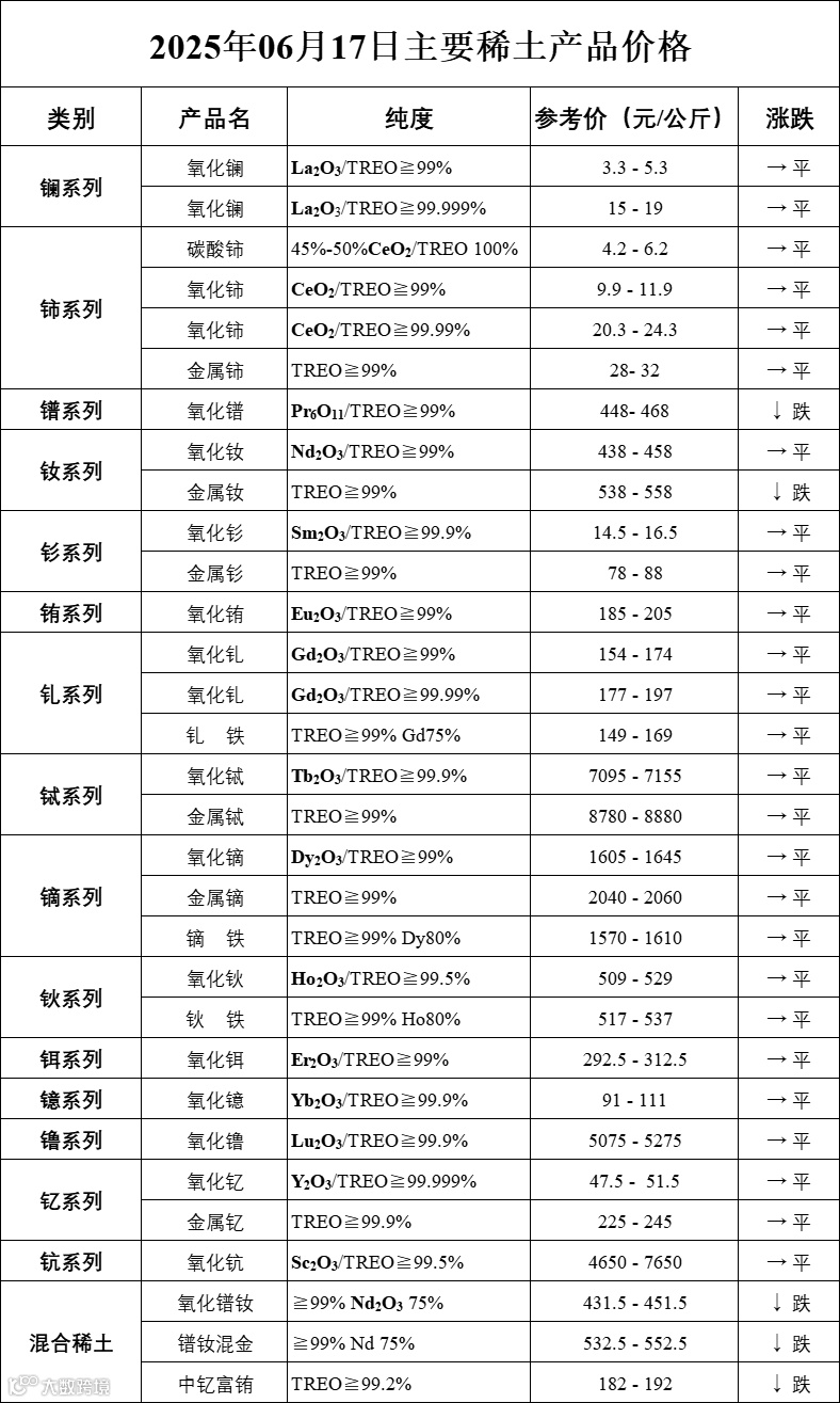 主要稀土价格