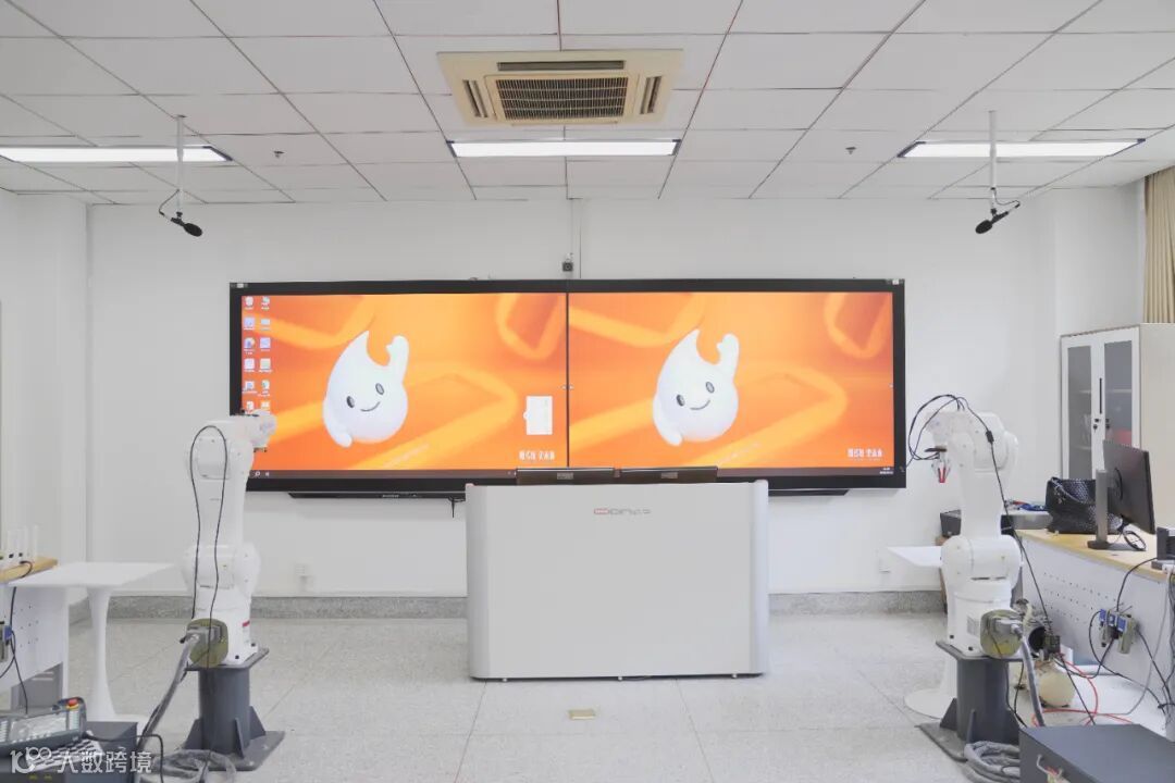 整个实验室,从极窄双屏智慧黑板、双屏物联讲台,到学生面前的抬头屏,再到一键控制全场灯光窗帘的物联管理系统,共同构成了一个“全场景数字化实训教室”。在这里,技术的边界被打破,理论与实践、线上与线下、个体与团队被无缝地融合在一起。