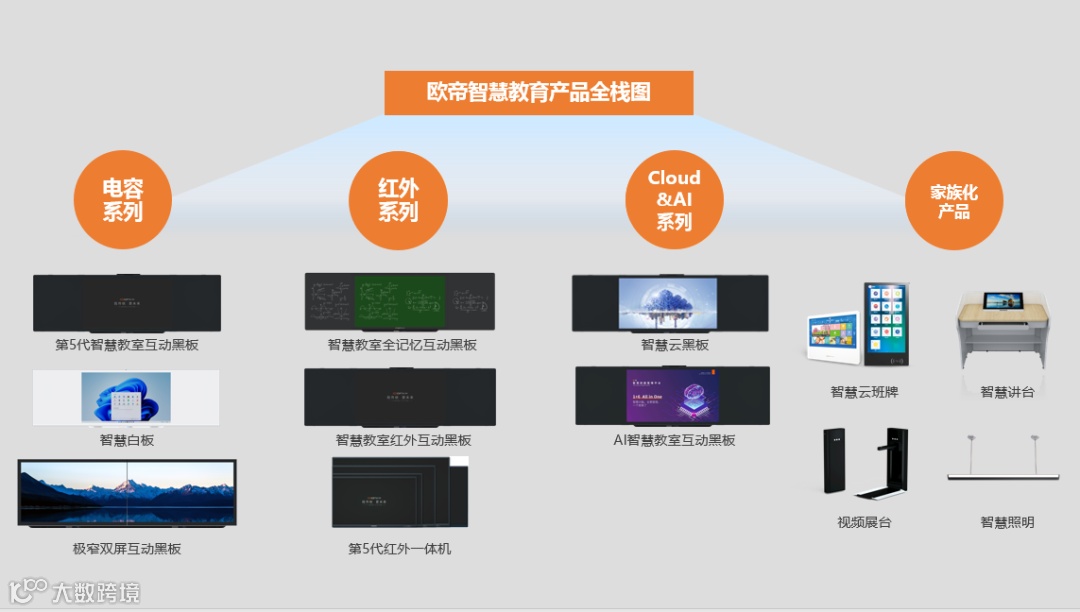 欧帝此次呈现的标准型1+3智慧教室以欧帝第五代智慧教室互动黑板为核心,由智慧云班牌、数字校园广播、智慧讲台组成。