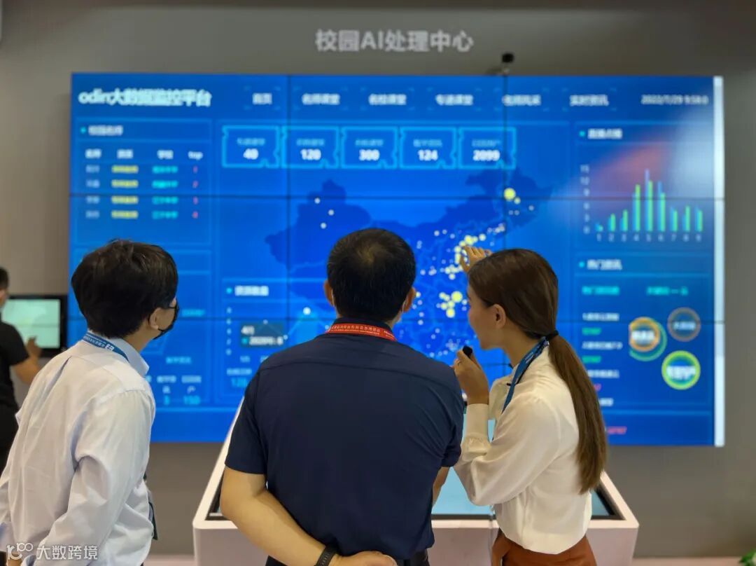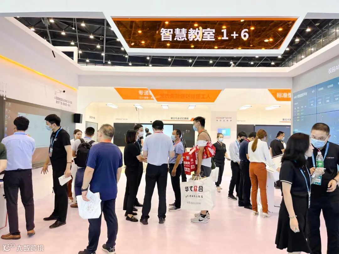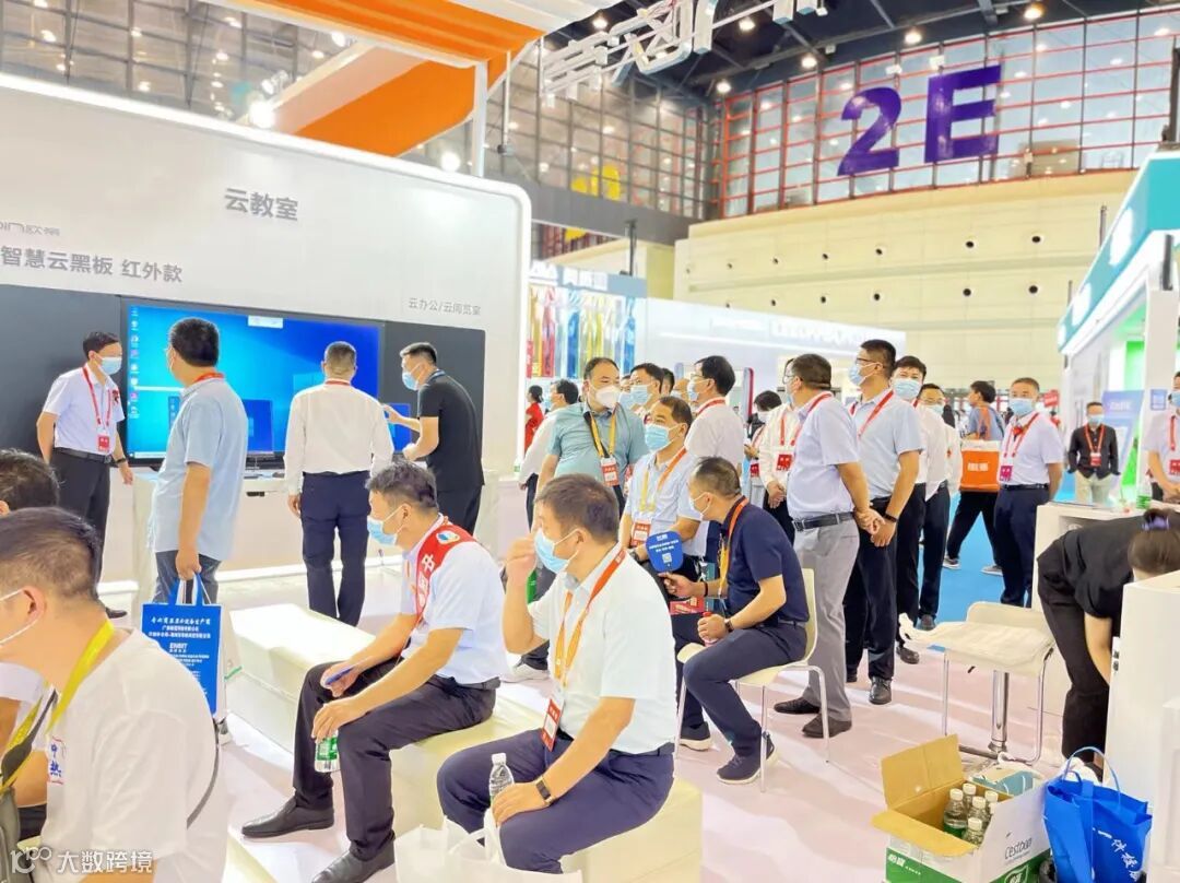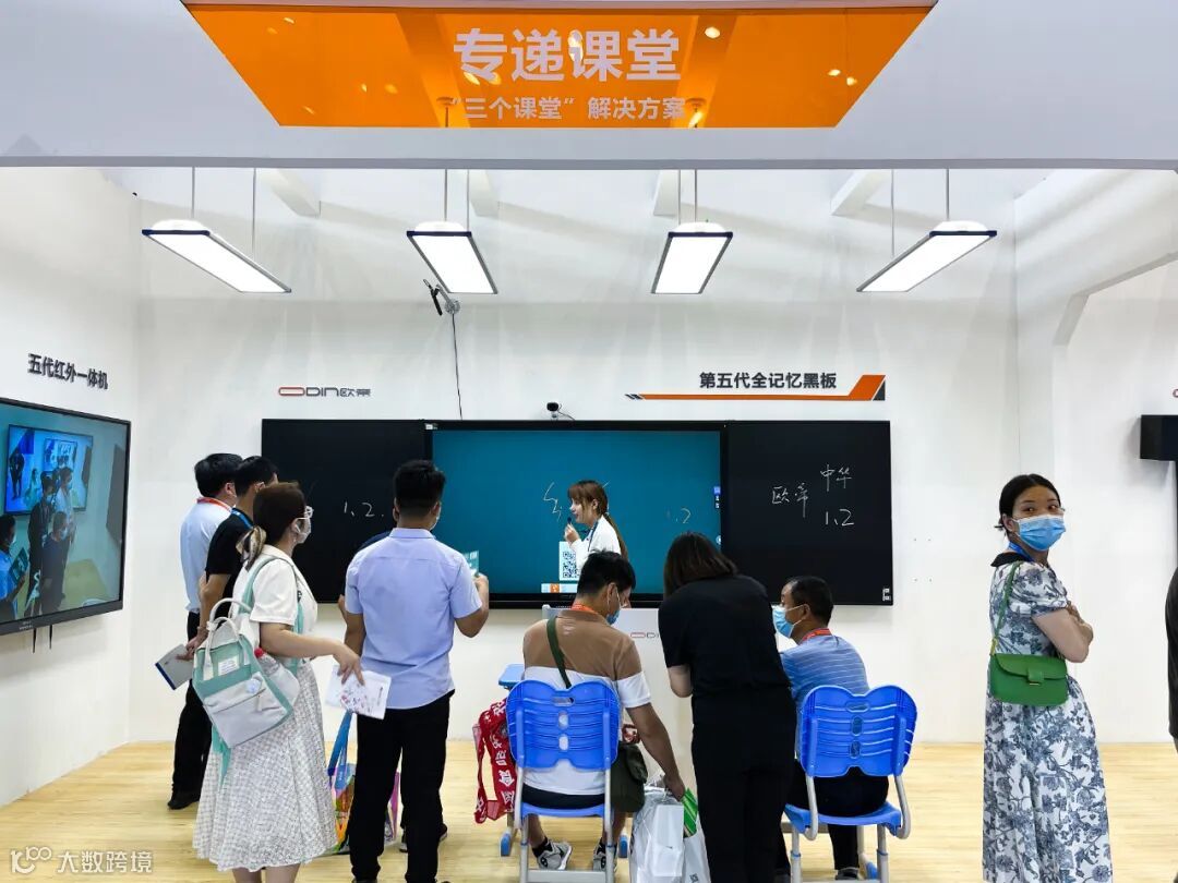 在展会现场,两块屏幕自由交互吸引了许多观众,在现场的老师看来,它能够实现多视角联合教学、视觉化立体授课,提升学生课堂兴趣,与智慧黑板相比,双屏触控拥有非凡魅力。