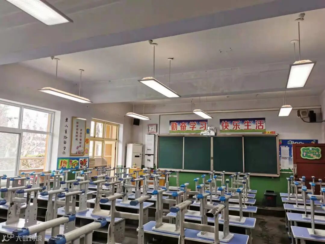陇县西大街小学按照《综合防控儿童青少年近视实施方案》的要求,更换老化的照明设备,使用欧帝智慧照明方案,在教室中布置9盏护眼教室灯,在照度均匀度、显色指数、色温、眩光、功率密度、频闪等参数上均满足建设标准要求,有效提升教室整体照明水平。