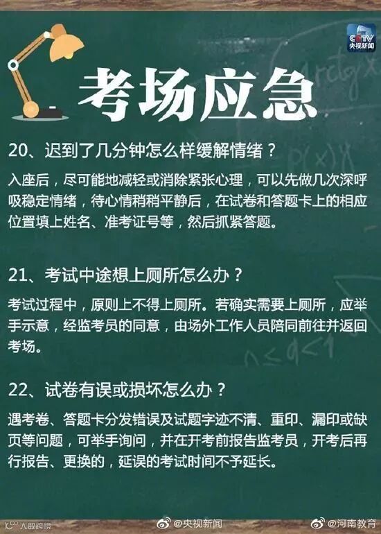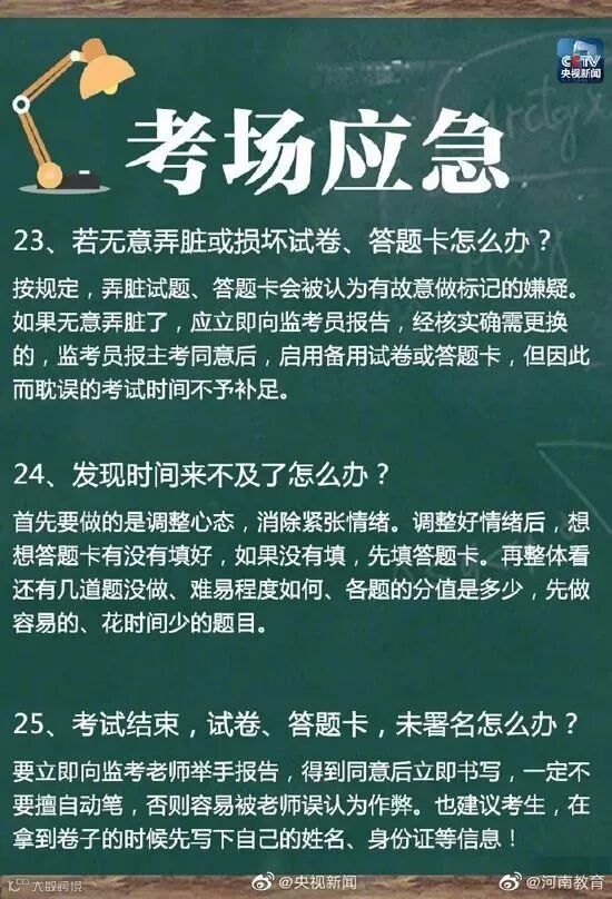 ④每科考完不要对题,及时放下。
