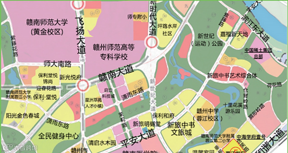 项目分两个地块建设,位于赣州蓉江新城 RJ02-C02-06 地块和 RJ02-C02-04 地块,挨着嘉福新天地二期,一线临江,周边公园环抱,环境优美宜人。建设内容为集团总部、科创中心两部分。其中集团总部包括产业中心、综合服务楼、会议交流中心等;科创中心包含稀土科技馆和科研楼等设施。