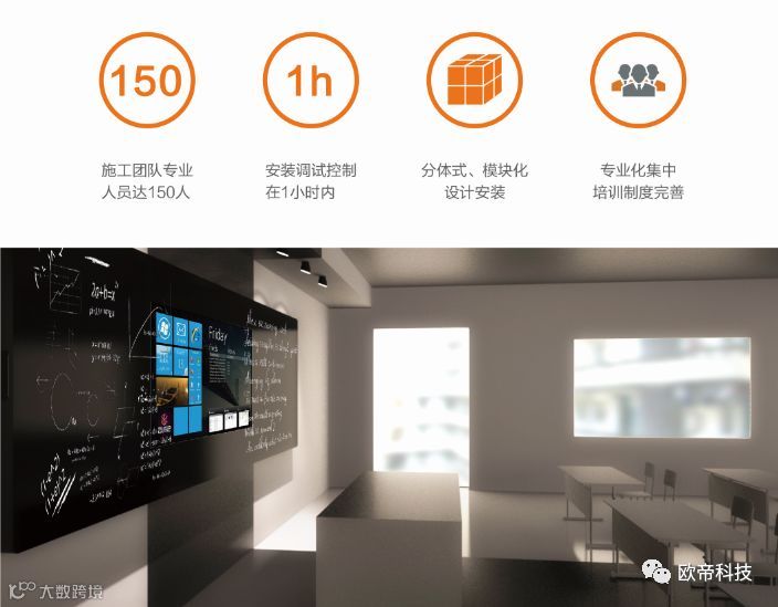 欧帝科技推出的“智慧教室互动黑板”,又称“智能互动黑板”、“互动黑板”、“智慧黑板”或“智能黑板”,它是将传统黑板和多媒体教学之间的有机结合,无缝切换。同一块面积既实现普通黑板的粉笔书写功能,也提供了高清显示和互动触控,包含播放教学课件、视频、图片、动画以及批注等各种丰富的多媒体教学功能。产品将传统黑板与智能高清互动显示功能无缝结合,传统教学与现代科技深度融合,带来最佳的教学体验。
