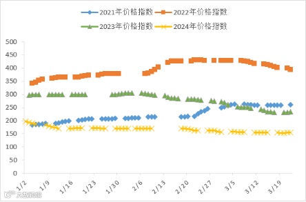 本周有5个交易日,稀土价格指数分别为153.9、153.3、153.6、154.3、154.3,价格指起伏不定。20230322-20240322区间稀土价格指数走势图、2022-2024年稀土价格指数走势图、2021-2024年价格指数同比走势图如下:
