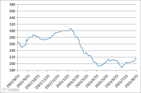 图1 202208025-202308025区间价格指数走势图