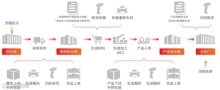 灵活拆分包装,快速生成新码,始终保持按包装收发和退货,从而实现与MES系统的条码集成。