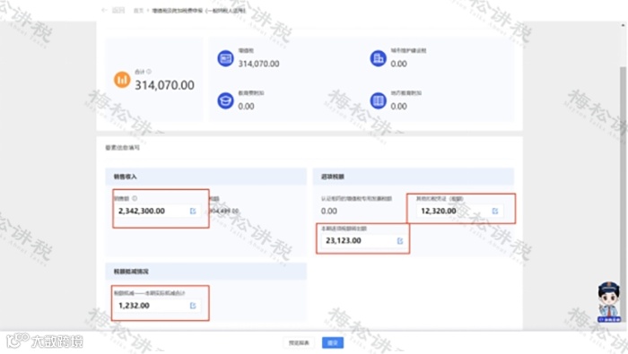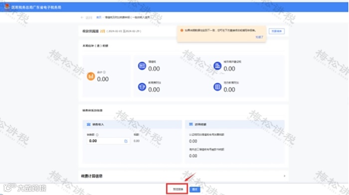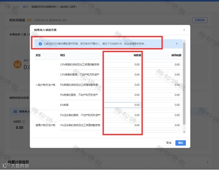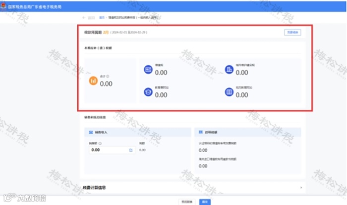 (1)系统根据开票数据等进行部分数据自动预填,纳税人需要对税款所属期、预填的数据以及税(费)结果进行确认。