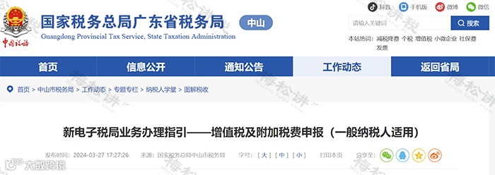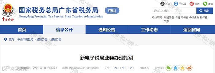 3月25日,广东省中山市税务局发布《新电子税局业务办理指引》。