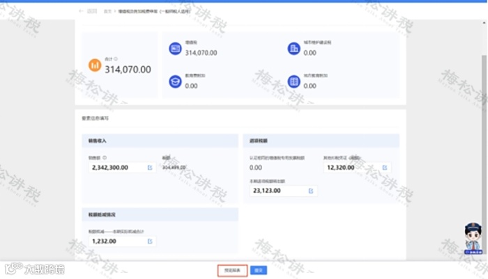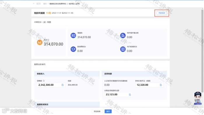 (2)纳税人如需对申报表预览,可通过点击“预览报表”进行申报明细数据预览。