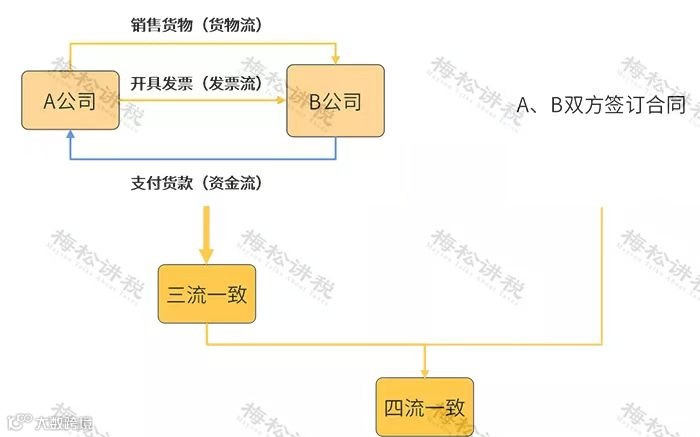 三流一致就是资金流、发票流、货物流相统一,有的会加上合同流,也就是四流一致。