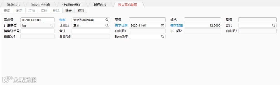 ● 因为医药行业的零售特性,在计划产量中除考虑已有的销售订单外,需对产品未来几个月的销售市场进行评估,那么这些独立于订单需求之外的预测需求,可通过独立需求功能来解决。