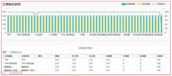 利用 MES 系统进行排产,把计划细分到工序,通过定向推送到工站,工站就会收到任务,包括需要完成的工序、要求完成的工时数等。通过 U8+MES 在现场收料、开工、完工、报工过程中的使用,所有生产进度数据、质量数据都会在系统报表上实时呈现。