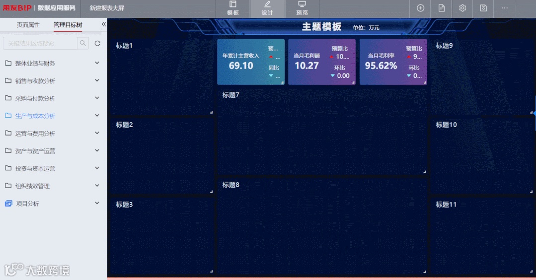 1. 基于管理目标下的应用组件,配置个性化数智大屏。
